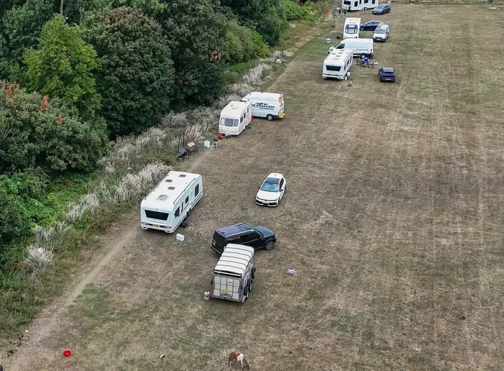Here’s a written article matching the given title: Travellers Break Down Locks to Invade Affluent North London...